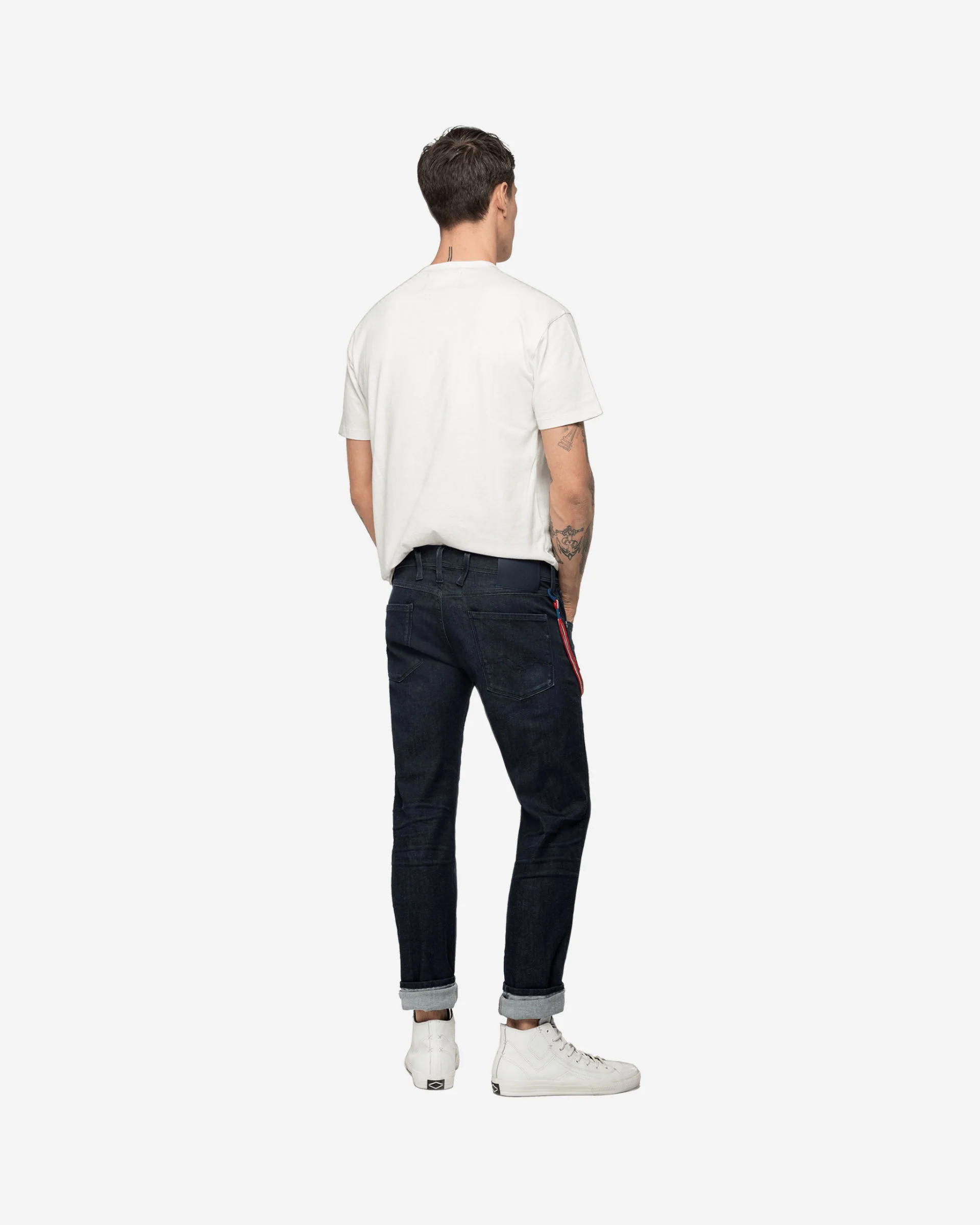 Men’s slim fit jeans in 11.75 oz dark blue rinse Hyperflex™ Bio cotton with 3D resin finish, subtly hand-sanded to create distressed areas. Regular waist and slightly tapered leg, zip fly, coin pocket with iconic seagull stitching. Removable key ring with snap hook and ribbon in the team’s colours. Made from organic cotton and recycled polyester, the Hyperflex Bio fabric is an environmentally friendly choice that uses innovative technology to combine the original denim look with ultimate comfort. This item is part of an exclusive collection created by Replay as the Official Denim Partner of the Paris Saint-Germain football team. EXTERNAL CLOTH : 88% Cotton,8% Polyester,4% Elastane